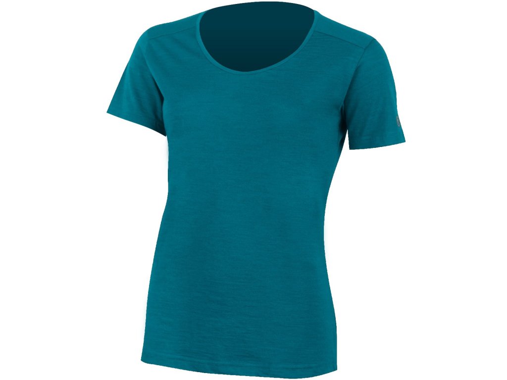 Tricou merino pentru femei CINDY în culoarea albastră combină lână merino fină și acril în proporție de 50/50 pentru un echilibru perfect între confort și rezistență. Tricoul ușor (160 g/m²) este respirabil, moale și ideal ca prim strat pe tot parcursul anului. Absoarbe excelent umezeala și oferă confort termic în orice condiții meteorologice.